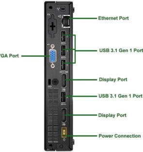 Hinten: DisplayPort, HDMI, LAN RJ45, VGA, 4x USB 3.1